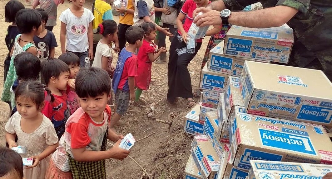 Thank God for His provision. Pastor Sathaporn, Pastor Leuchai and team were able to send in foodstuffs to the refugees at the Thailand border (Thai side). Praise God, many children were blessed with boxes of milk for their nourishment. The children were so happy and thankful to receive this milk powder that they presented a song for the team followed by a prayer of thanksgiving by a sister.